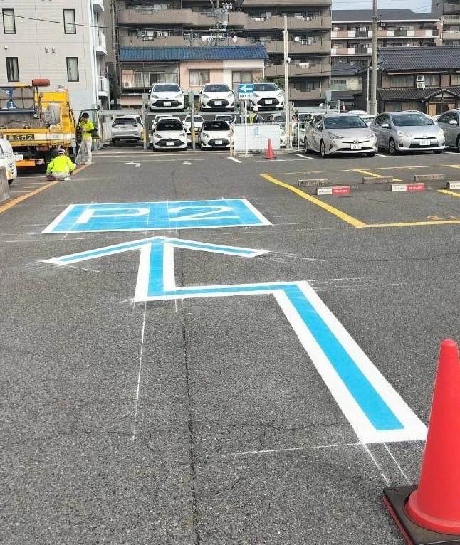 また、角度をつけた駐車スペースや、出入口周辺のラインを整理することで、スペースをより効率的に使える設計が可能です。