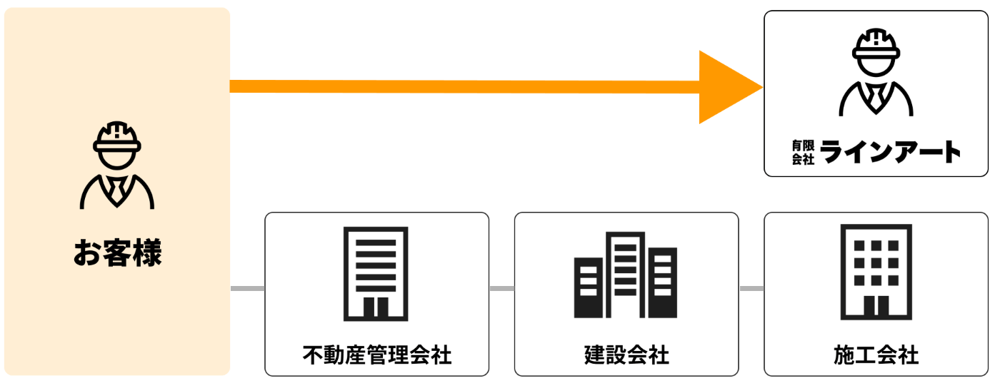 ラインアートでは仲介会社を介さず、直接施工を行うため、中間マージンが一切発生しません。そのため、余分なコストを抑えつつ、高品質なサービスをお届けすることが可能です。通常、仲介業者が入ることで見積もり金額が増加しがちですが、当社ではお客様に直接ご依頼いただくことで、コストパフォーマンスを最大限に高めた価格設定を実現しています。